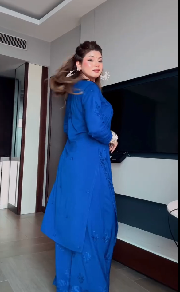 • Lucknow Chikankari Hand Embroidered Blue Cotton Kurta